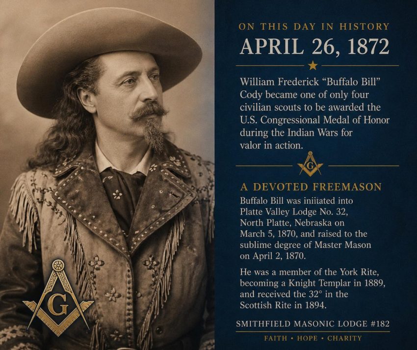 On this day in history April 26, 1872 William Frederick “Buffalo Bill” Cody became one of only four civilian scouts awarded the U.S. Congressional Medal of Honor during the Indian Wars for valor in action. Though later removed from the rolls in 1917, his honor was officially restored in 1989 by the Army Board for Correction of Military Records.